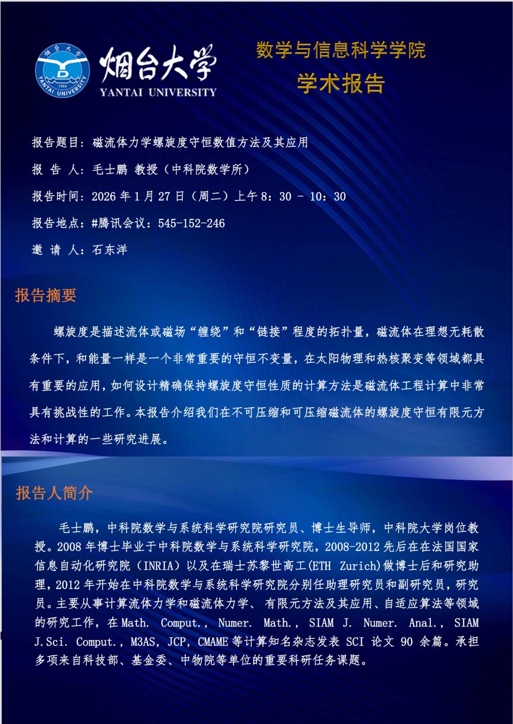 学术报告—毛士鹏 教授(中科院数学所)—20260127
